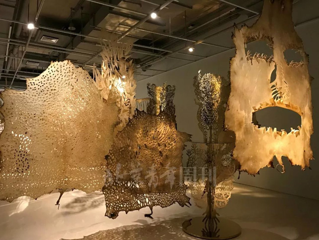A:时代美术馆里有三四个厅我控制得比较多,大厅里因为“大骷髅架”身后阴影里边的动物显得很酷,旁边“万物”的厅效果也很好。时代美术馆是一个很标准的高大上的美术馆,牛皮的作品在展厅中特别酷,就像是迷宫一样。在威尼斯双年展的时候,参观的人太多了,像一锅煮沸的粥。回到北京每个厅都有一种让观众能沉浸进去的感觉,每个厅的气质差异也很大。