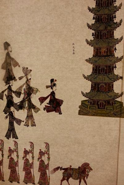 Wang and nine other craftsmen have been making extra shadow puppets for the show since March. The ancient figures are depicted on an illuminated scroll.